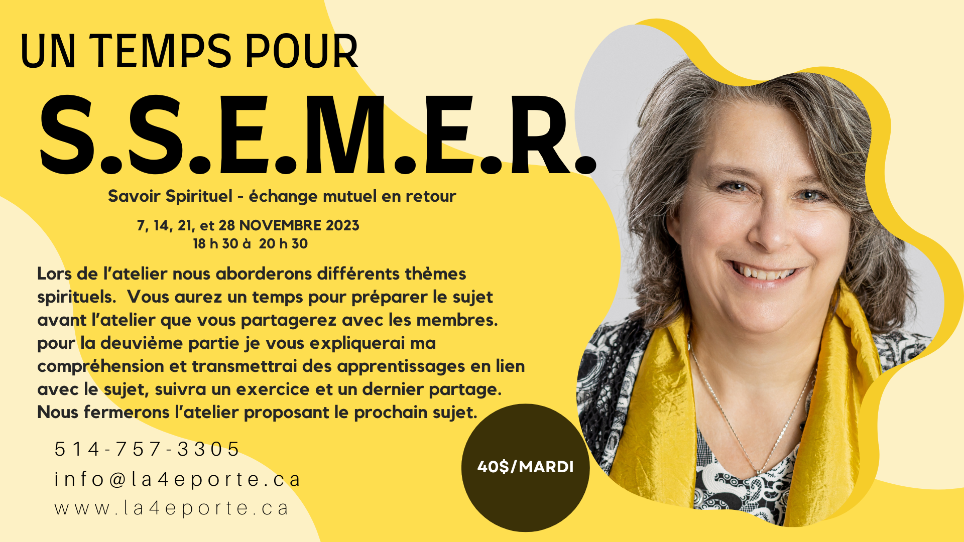 coût 40$/atelier (total 160$)